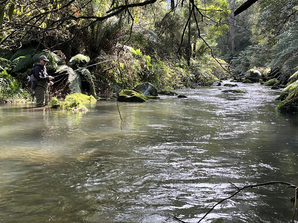 In a perfect world, Max and I would have commenced Victorian stream trout season 2025/26 the day before (true opening day) under much more benign conditions. But here we were, deep in the Otway Ranges on an admittedly beautiful stream, while giant mountain ash swayed ominously every time gale force northerlies pushed down towards the surface.